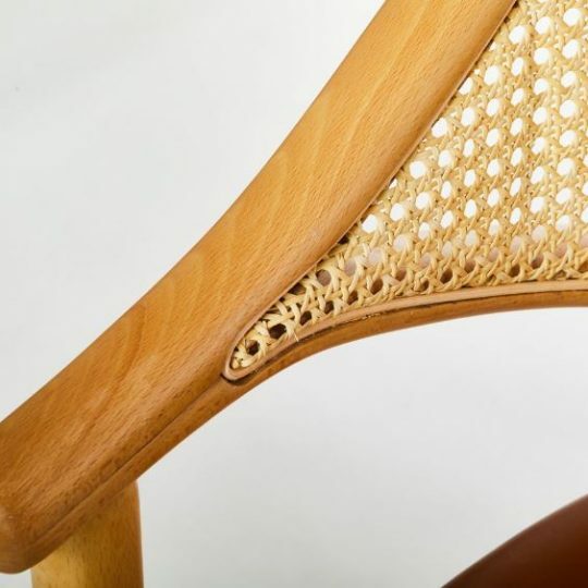 The chair is made of beech and can be customized thanks to the combinations of the upholstery, in fabric or leather, cane, rope and the different wood finishes.