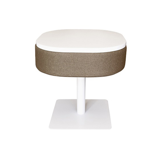 Unita low-tables come in two different sizes, with a Corian® table top and option of white or black base. A non upholstery option is also available.